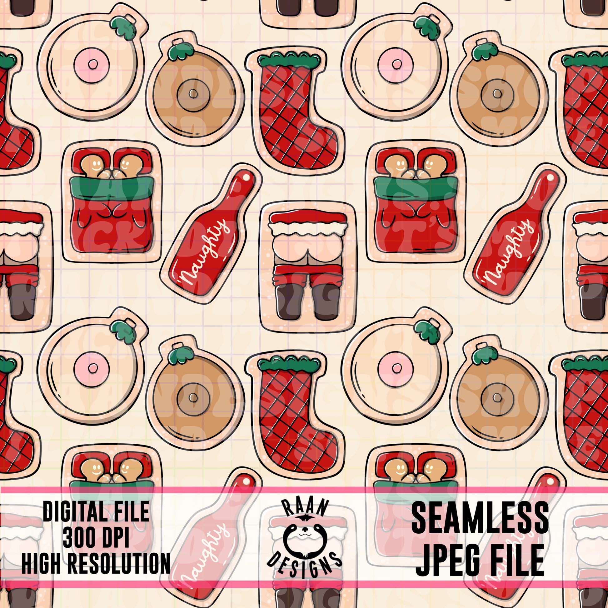 Naughty Christmas Sugar Cookies-Cream-Seamless Pattern
