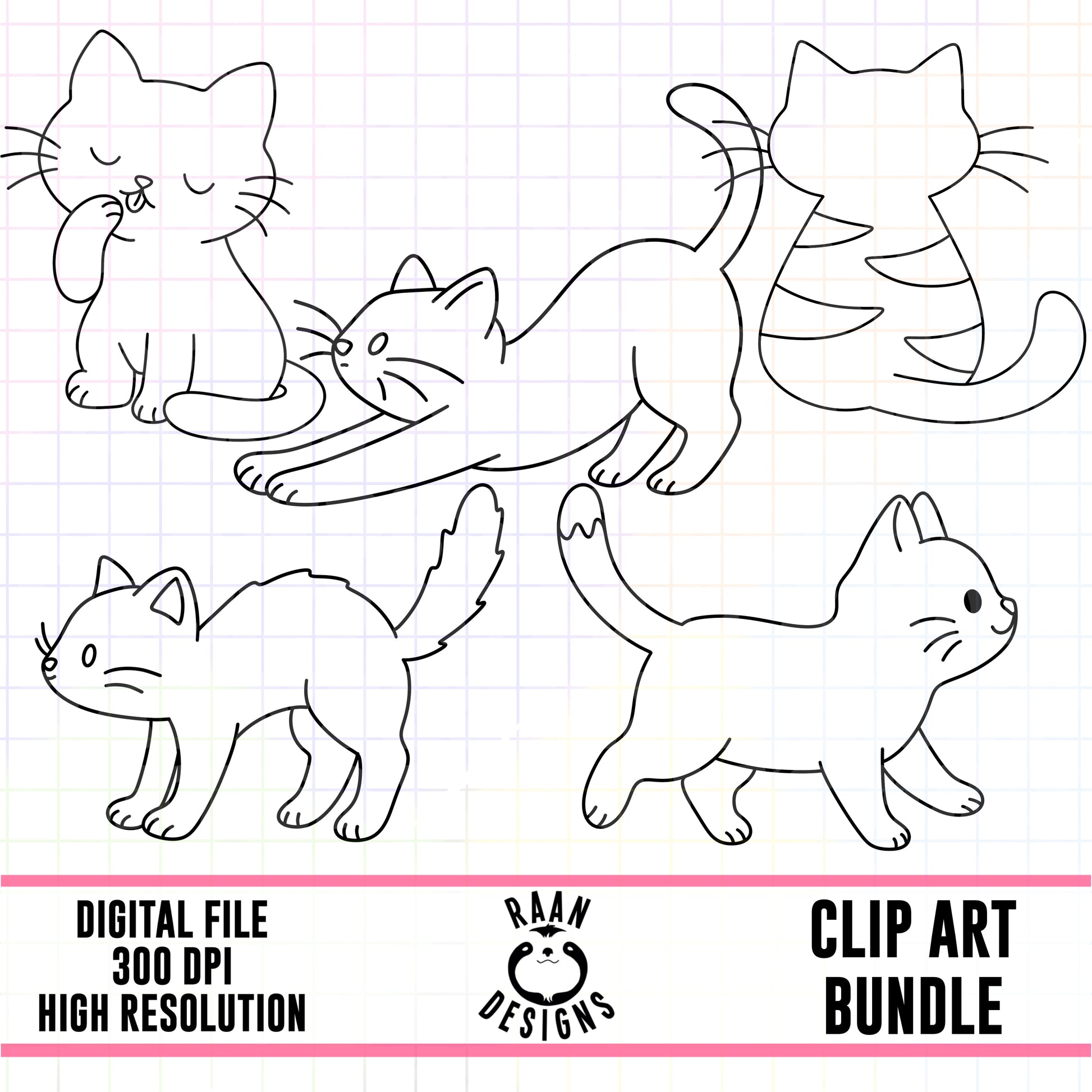 Simple Cat Outlines-Clipart Bundle