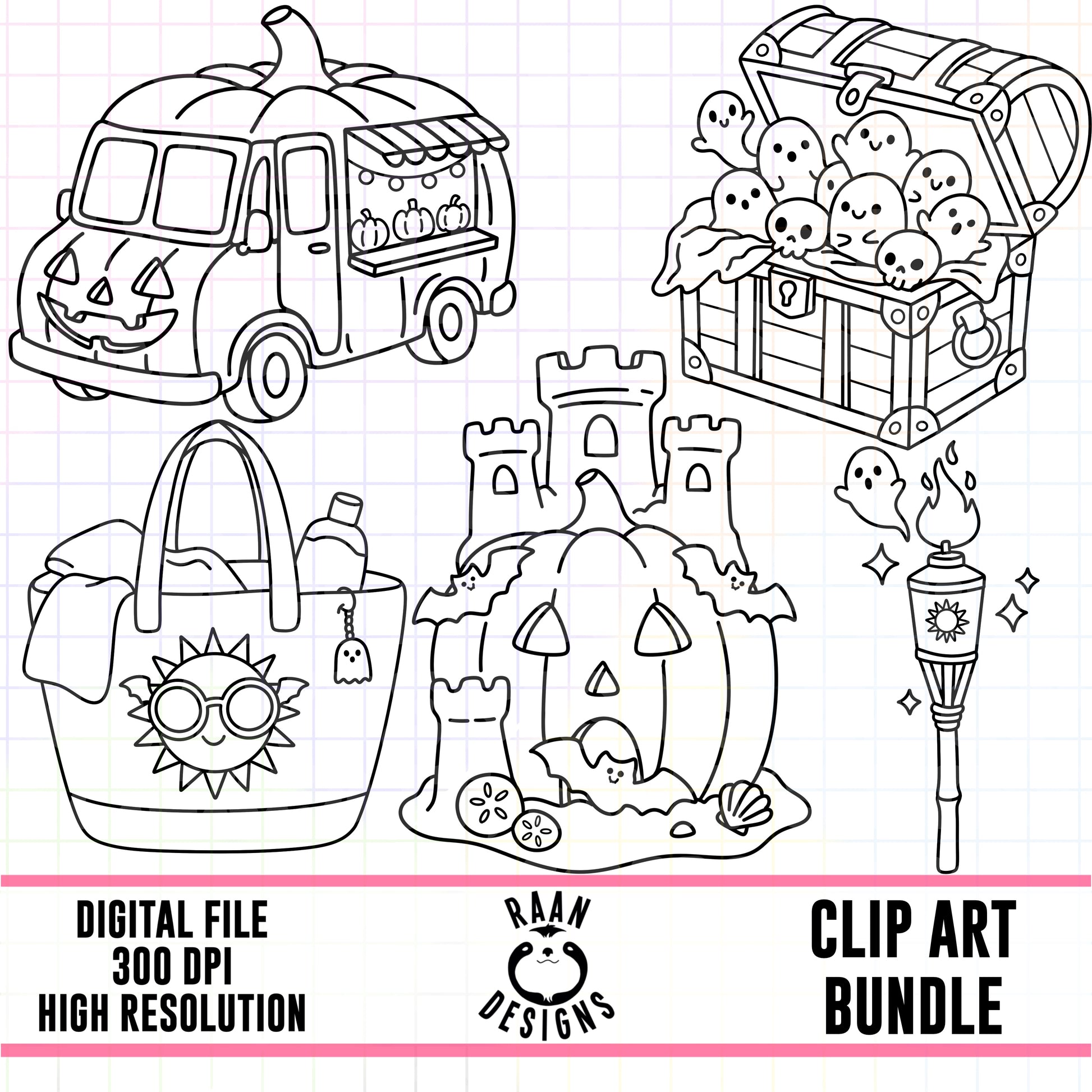 Spooky Summer Outlines-Clipart Bundle